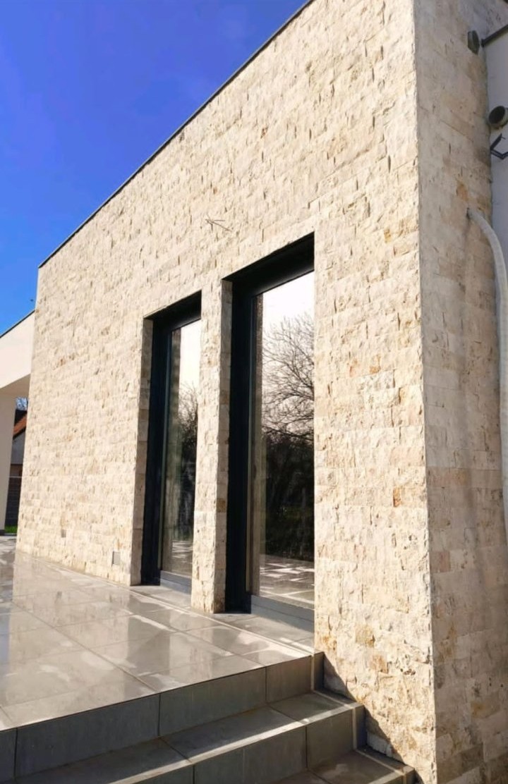 Svaki komad kamena ima jedinstvenu strukturu i boju, što prostoru daje prirodan i nenametljiv vizuelni identitet.